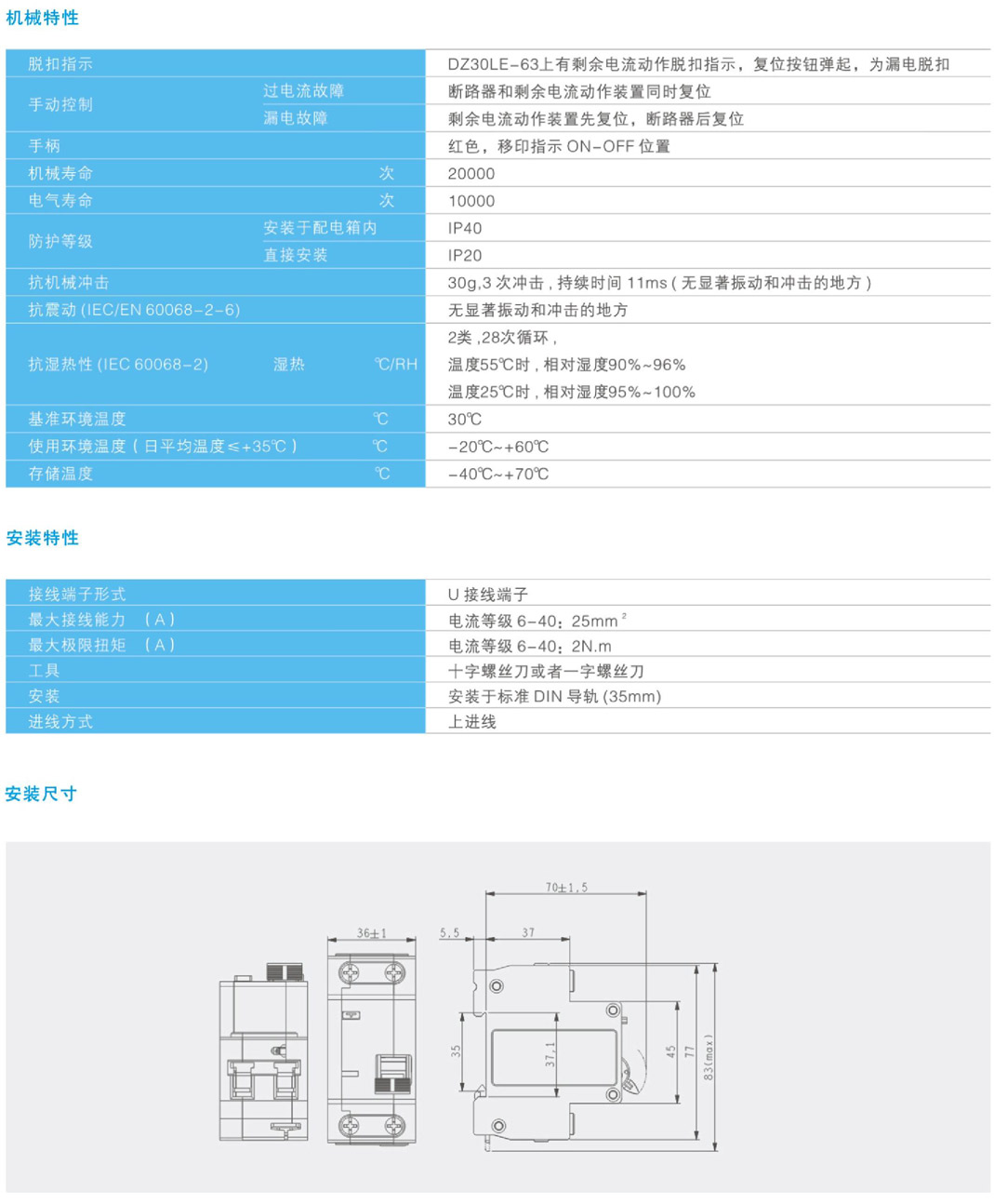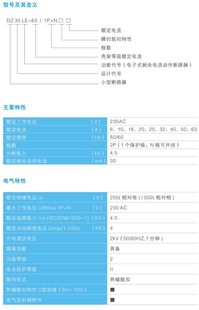 - DZ30LE-63剩余电流动作断路器